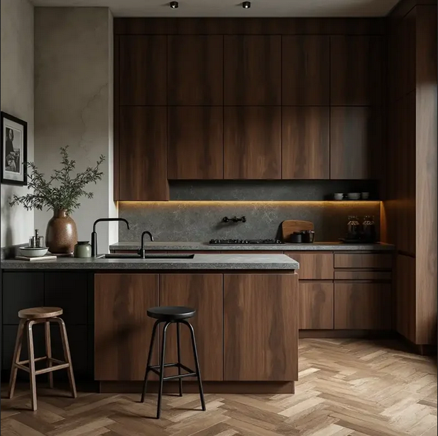 کابینت فرامید طرح چوب از ورقهای MDF با روکش ایتالیایی ساخته میشود که سطح آن به صورت برجسته و مات طراحی شده است. این برجستگیها حس لمس چوب طبیعی را ایجاد میکنند و باعث میشوند ظاهر کابینت بسیار طبیعی و دلنشین به نظر برسد. این مدل کابینت برخلاف کابینتهای هایگلاس که براق هستند، نور محیط را منعکس نمیکند و به همین دلیل برای افرادی که فضای آشپزخانهای با نور ملایم و طراحی کلاسیک را میپسندند گزینه بسیار مناسبی است.